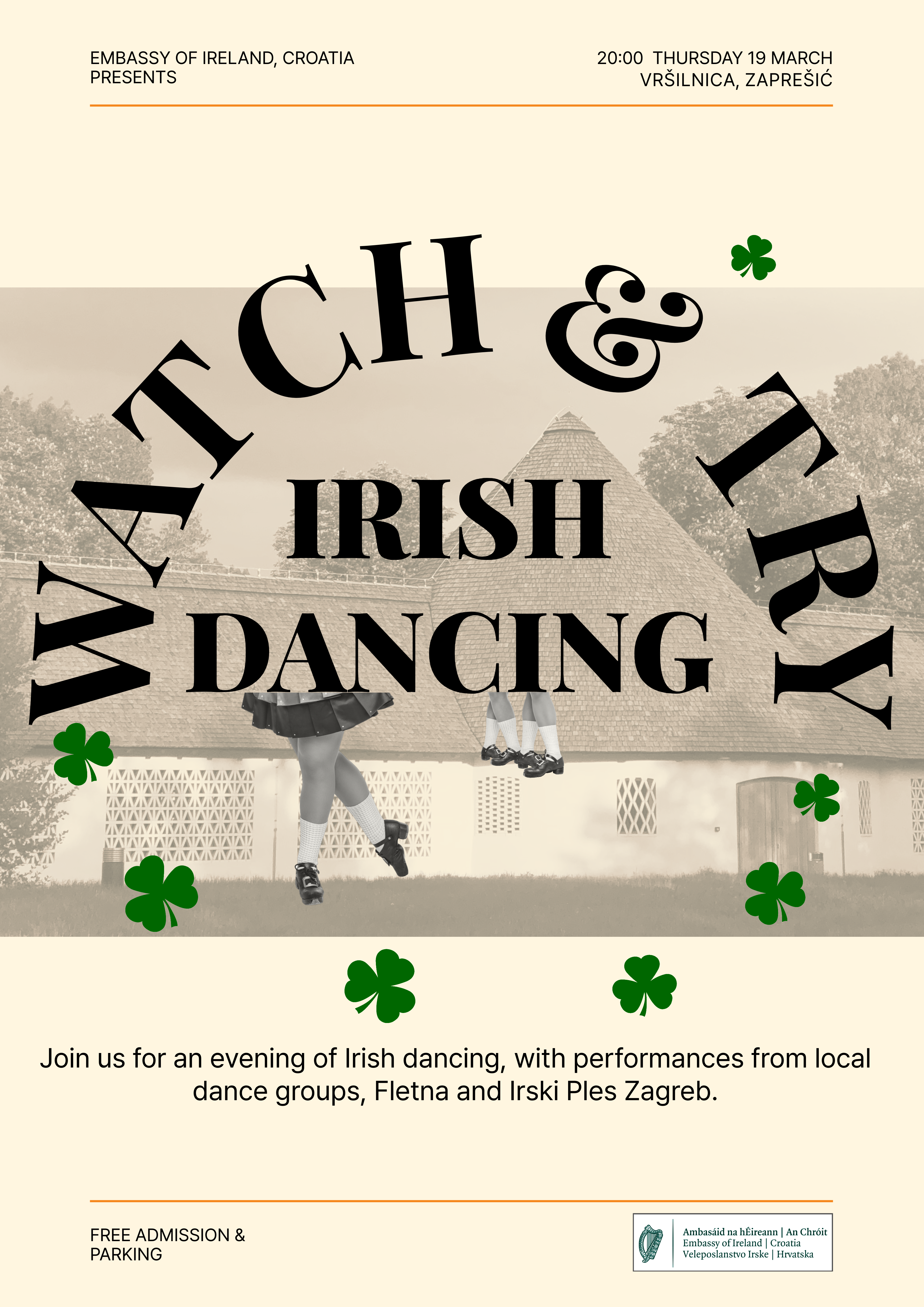 Večer irskog plesa u Vršilnici! Četvrtak, 19. ožujka, rezerviran je za posebnu večer u organizaciji Veleposlanstva Irske koje će u Vršilnicu donijeti dašak irske tradicije, glazbe i plesa.
