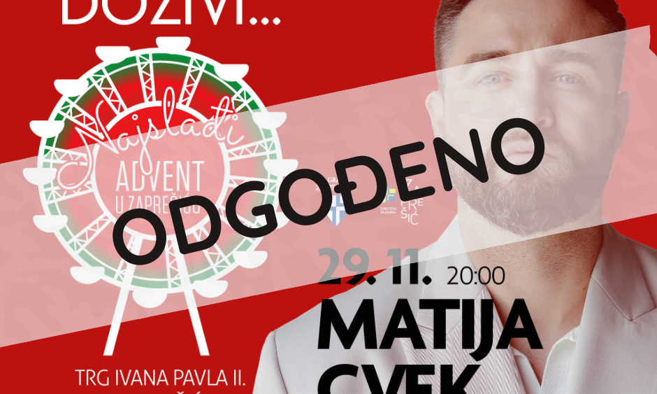 Matija Cvek zbog bolesti, nažalost, neće moći nastupiti na otvorenju Najslađeg adventa u subotu, 29. studenoga. Na otvorenje nam stiže Marko Tolja!...
